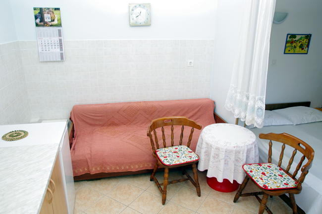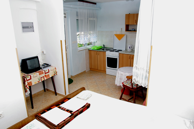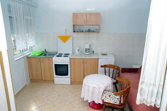 “ die Küche komplett eingerichtet mit Elektroherd,